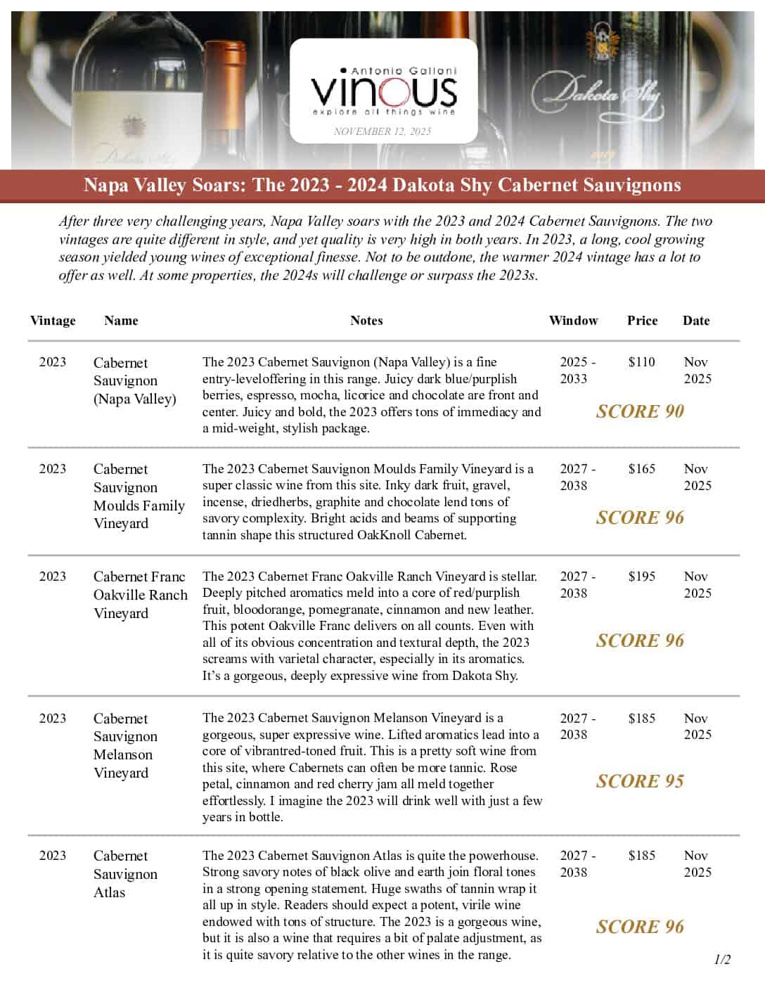 2023 Cabernet Franc Oakville Ranch Vineyard: SCORE 96