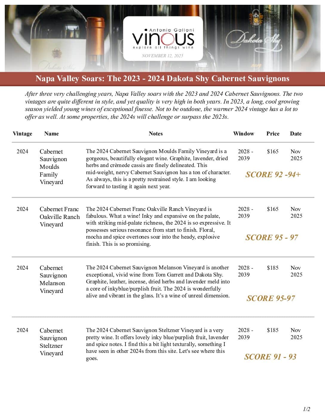 2024 Cabernet Sauvignon Moulds Family Vineyard: SCORE 92-94+